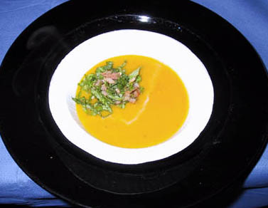 Soup Butternut Squash Soup with Tasso, Mustard Greens and Cheddar Biscuits Gewürztraminer |