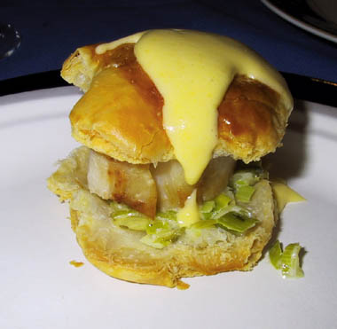 Fish Diver Scallop in Puff Pastry Shell with Fondue of Leeks and Truffled Hollandaise Chardonnay |