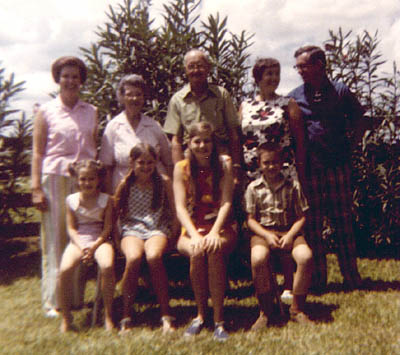 Top - Janelle Maeckel {Rector}, Pauline Billimek {Maeckel}, Leslie Maeckel, Sonia Slaby {Maeckel}, Gene Maeckel. Bottom - Carrie Maeckel, Jan Rector, Alice Rector, Clay Maeckel. Circa 1972.